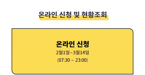- 온라인 신청 : 2/1(월) ~ 3/14(일), 07시30분 ~ 23시
