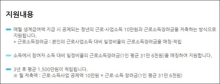 청년희망키움통장 지원내용