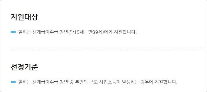 - 일하는 생계급여 수급 청년