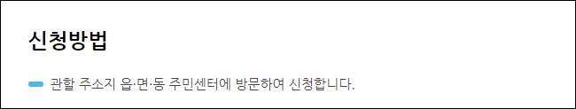 - 주소지 동 주민센터에서 신청