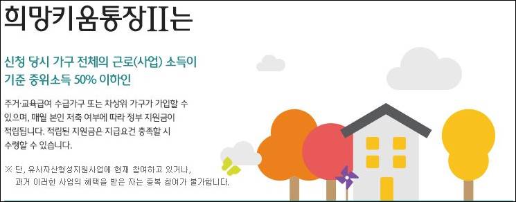 <희망키움통장 1,2 자격조건, 지원내용 등>