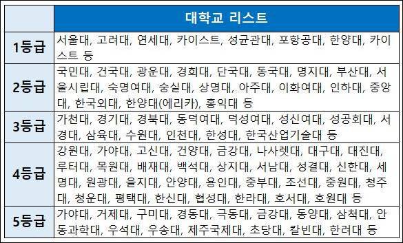 - 이전 나군 > 다군으로 변경된 대학들 : 연세대, 고려대, 숙명여대, 성균관대 일부