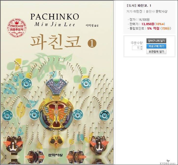 파친코 원작 소설을 이미 본 사람들은 드라마를 보기 전에 책을 먼저 보는 것을 많이들 권하고 있습니다. 원작 책은 70여개 국가에서 번역되어서 베스트셀러가 된 엄청난 작품입니다. pachinko 영문책은 1권이고, 한국 번역본은 1,2권으로 나누어 출판되어 있습니다.
