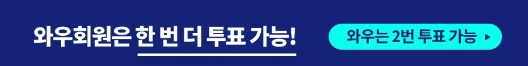 쿠팡에 가입되어 있고, 하루에 한번 투표를 진행할 수 있습니다. 이때 와우회원이라면 쿠팡플레이를 통하여 한번 더 추가투표를 할 수 있다는 점 기억하세요.