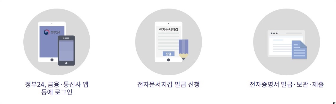 - 전자문서지갑 : 전자증명서를 유통하는 수단으로 저장, 열람, 전송까지 할 수 있게 제공